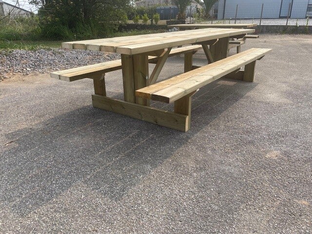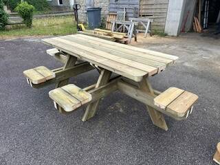 Table forestière avec dossiers pour un plateau de 2m de longueur/ 0,80m de largeur et 0.75m de hauteur pour 8 personnes à 330€