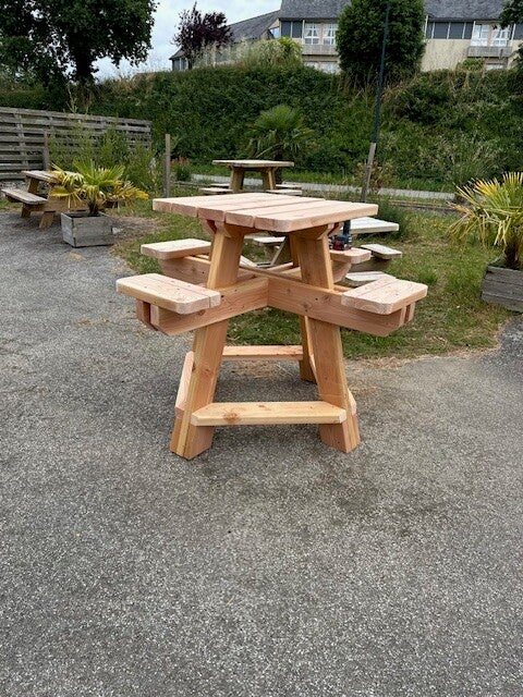 Table forestière avec un plateau de 1m de longueur/ 1m de largeur et 0,75M de hauteur pour 4 personnes à 240€